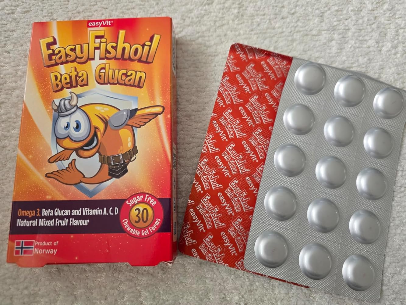 EasyFishoil Defence is a scientifically formulated chewable gel supplement designed to support the immune system of children aged 4 and above. It combines Omega-3 fatty acids (EPA and DHA) with immune-active ingredients including beta-glucan and key vitamins — all in a naturally flavored, child-friendly format.